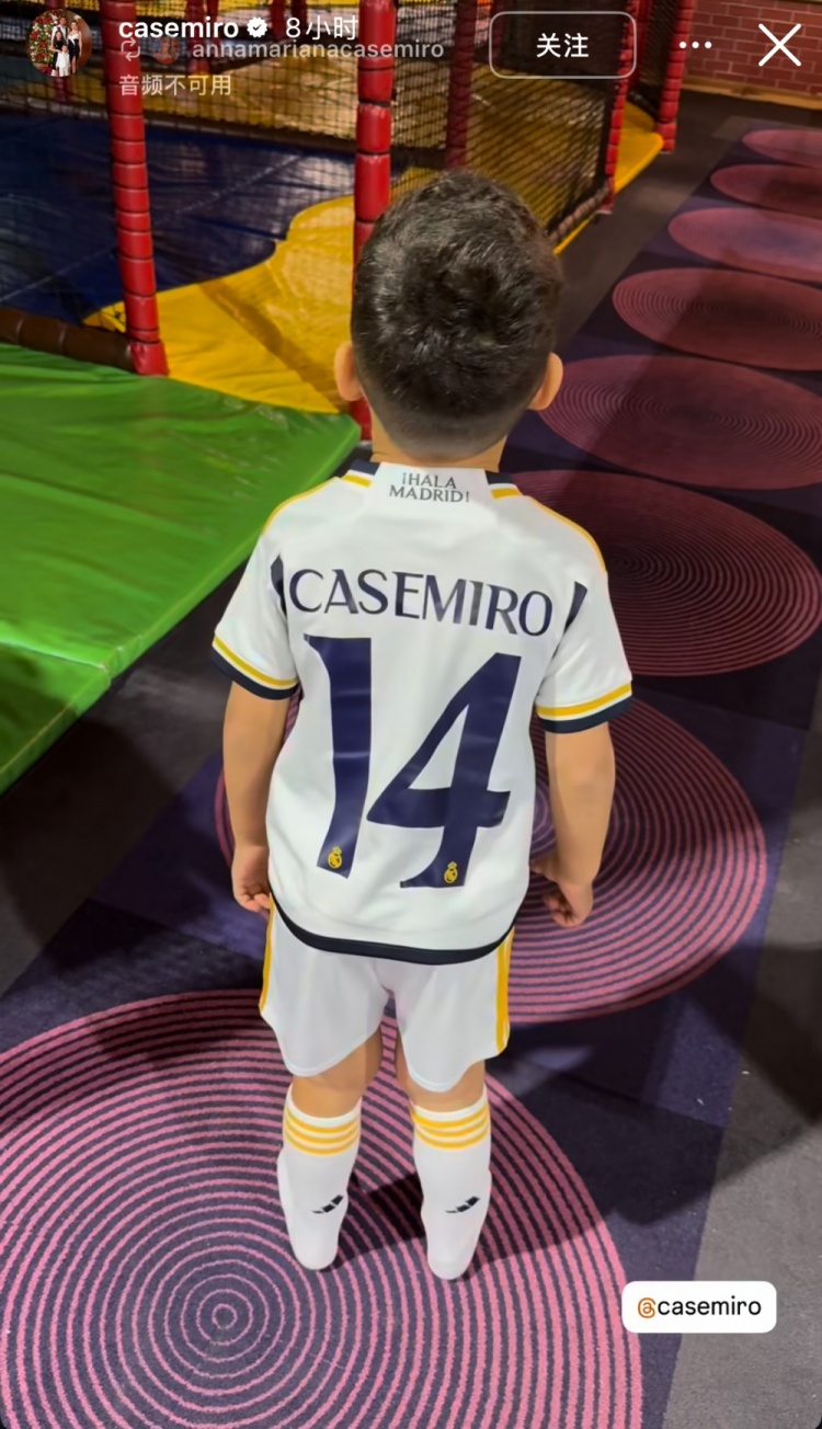 深爱!卡塞米罗社媒晒儿子身穿印有自己名字的皇马14号球衣照