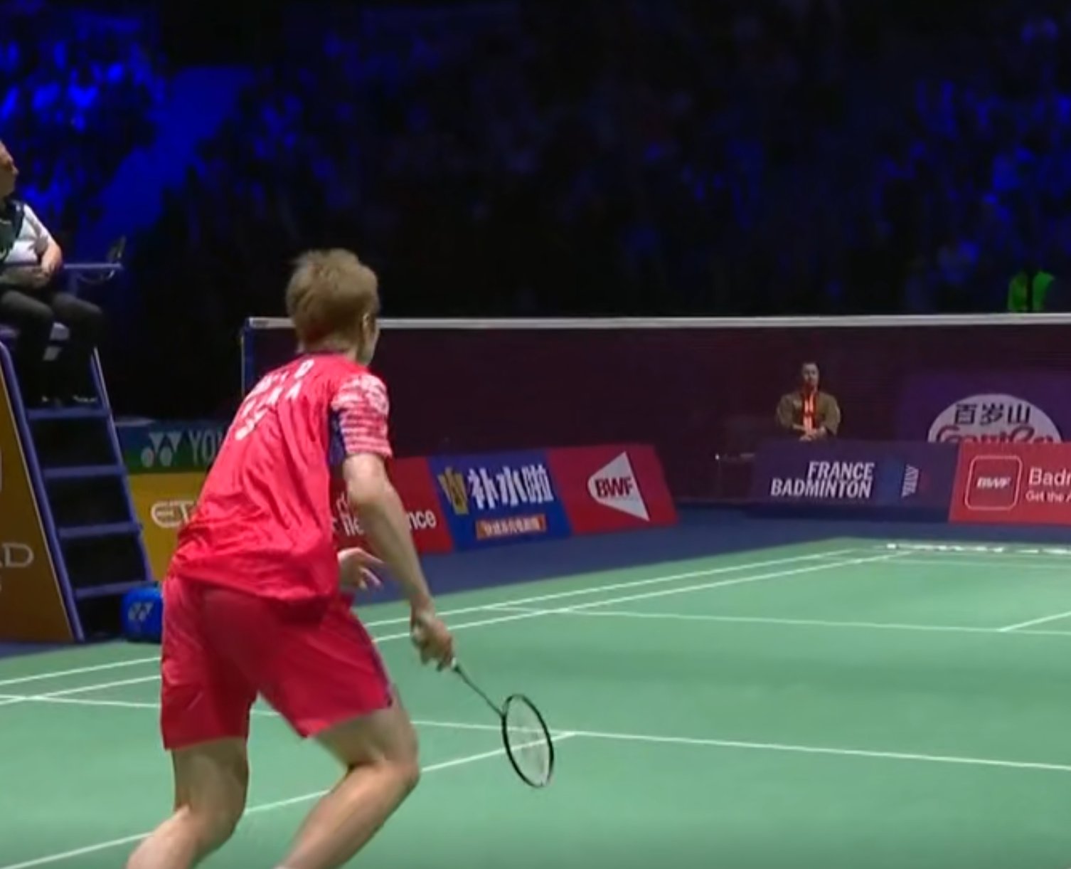 第二局石宇奇0-2落后,接下来保持主动,连得6分,6-2反超。即便被迫近一些球,石宇奇还是可以保持高质量的压头顶,持续点杀,11-5进入间歇。间歇回来,对手还是和第一局一样开始抢网口,幸好石宇奇稳住了,依然维持大比分领先,21-10扳回一城。